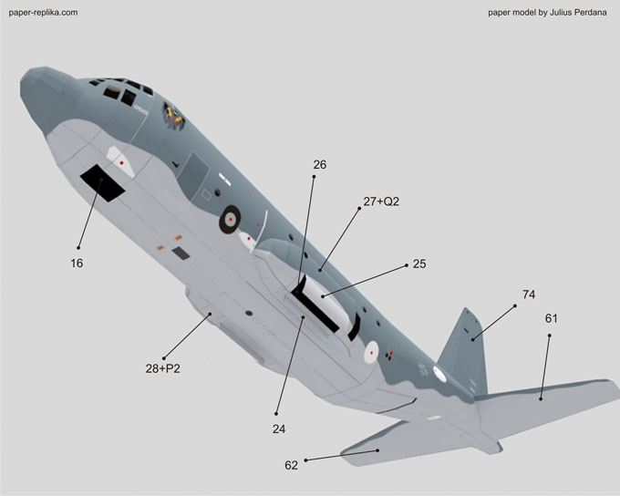 This AC-130U Spooky Gunship aircraft paper model is actually requested by many paper model builders couple years ago until now. Also the requests for a new livery for C-130 Hercules keep coming to me, so why not I take the challenge? I thought it was an easy task to re-color this model plane, but apparently it was not, as usual. I found out I had to re-model the vertical stabilizer and all the engines, I was not satisfy with the old ones. That's not all, I also remove all glue tabs and made separate inner glue tabs, so the assembled model will have smoother profile. First time I know this gunship was from a local aviation magazine, but that was not amazed me yet until I saw it in Transformers the movie (TF1) and play as a Spectre gunner role in Call of Duty : Modern Warfare and in later Modern Warfare 3. As a bonus I added a display stand in this template, the scale is still the same, 1:100.