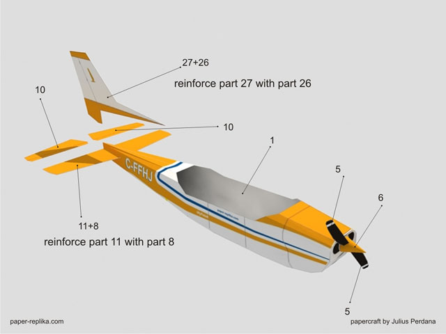I don't remember exactly the last time I design an aircraft beside the airliner series. Aircraft has been my passion for so long, and because that passion I was introduced to papermodel as a hobby until now. I love this cessna 172 Skyhawk a lot. This model is quite small, only 23 cm wingspan, with 1:48 scale it is perfect for your desk decoration, and it only needs 2 sheets of paper, recomended to use 160 gsm BC or 120 gsm inkjet paper. I also make a change on the entire web regarding this aircraft, I notice there are enough aircraft models to have their own category instead be inside transportation category. Cessna 172 Skyhawk is a single engine with 4 seat, with its wing on top the fuselage (high wing). Cessna 172 is the most widely use plane ever built, compared to other aircraft. And the most successful light aircraft ever produced from 1956 to date. In 2008 at least 43,000 cessna 172 had been rolled out from the production hangar.