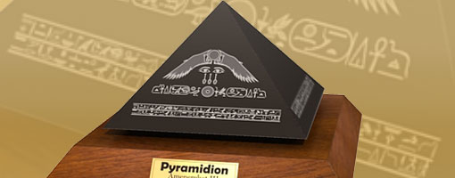 This model may looks familiar for those who ever saw my own depiction of Illuminati pyramid model. That was just my imagination though, but this latest pyramid model is a real deal. This so called "pyramid capstone" can be seen on museum on Cairo, Egypt. According to some articles about pyramid that I have read, the pyramids in their time was not like jagged stone bricks like we seen in our time. Those pyramids some covered with white limestone with smooth surface, and clean look, like modern building today. On the top of each pyramids there were a capstone, some made by red granite. There is one black granite that belongs to a King from Middle Kingdom (12th Dynasty : 1860 BC to 1814 BC), the name was written on that capstone, he is Amenemhet III. There's also inscriptions on it that says "Amenemhet beholds the perfection of Re". Re is the Ancient Egyptian Sun God.