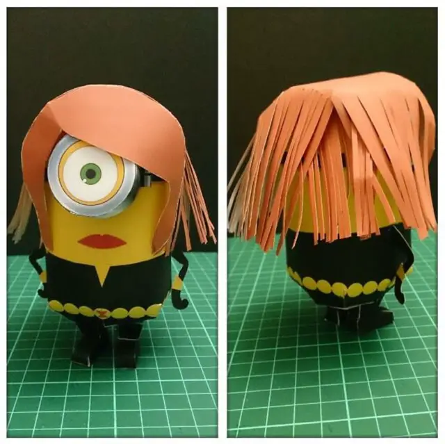 Minion Black Widow template by Rickie Yeung from Hongkong. This template contains of 3 pages of patterns, added one page for her hair part. The hair part is not ready to use, you have to manually cut the hair. Rickie has provided photos of how to manually cut the hair part. This is also a chance for you to make your own version using other material. I already adjust the scale of this template to match the other minion templates.