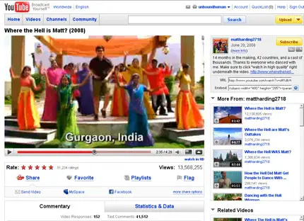 I always touched and thrill to watch this movie (Where the Hell is Matt - 2008). Maybe the best video I've ever seen on this year. Sometimes.. umm most of the time (LOL) my eyes wet when watching this video, Hey Matt if you read this.. come to Jakarta - Indonesia, I promise, I will accompany you dancing like that. Keep on dancing Matt! Cheers Jules. Find out more details about him at http://www.wherethehellismatt.com