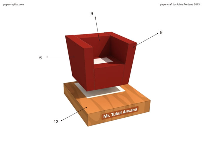 This paper craft template was specially designed for Mr. Tukul Arwana the host of "Bukan Empat Mata" on Trans-7 television talk-show. Last week I had guests from Trans-7 crew who covered about paper model, paper crafting  hobby at my house. There are also friends who accompanied me from Perikertas (Peri) on that interview. As you can see on the photo below, Reza Rauf Raphanus, a Paper Replika store admin and also a Perikertas event manager interviewed by Marcella Lumowa, she is a co-host at that television show. I also interviewed on that day as a paper craft designer, but as usual I wore my scout trooper armor and helmet :p. So I'm not really sure that scene will be aired, but if it does, it would be super cool :p. This template is quite simple, with only 3 sheets of paper you can build this paper craft.