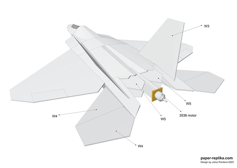 Because our last big size Su-30 went so good, we made another big size jet again, this time is F-22 Raptor. With slightly smaller wingspan but with the higher wing area compare to my Su-30. Also with the lighter weight, only about 1 kg, make it even smaller wing loading. It flies really great with 4S 2200mAh Lipo battery, 50A ESC and 10x6 prop. I also put landing gear set to the model and it perfectly take off from a runway, but to able to did that I had to swap the propeller with 8 inch from 10 inch prop, so the prop won't strike the asphalt. I think this model can be converted into EDF model jet, because the space on the body of this model is very spacious.