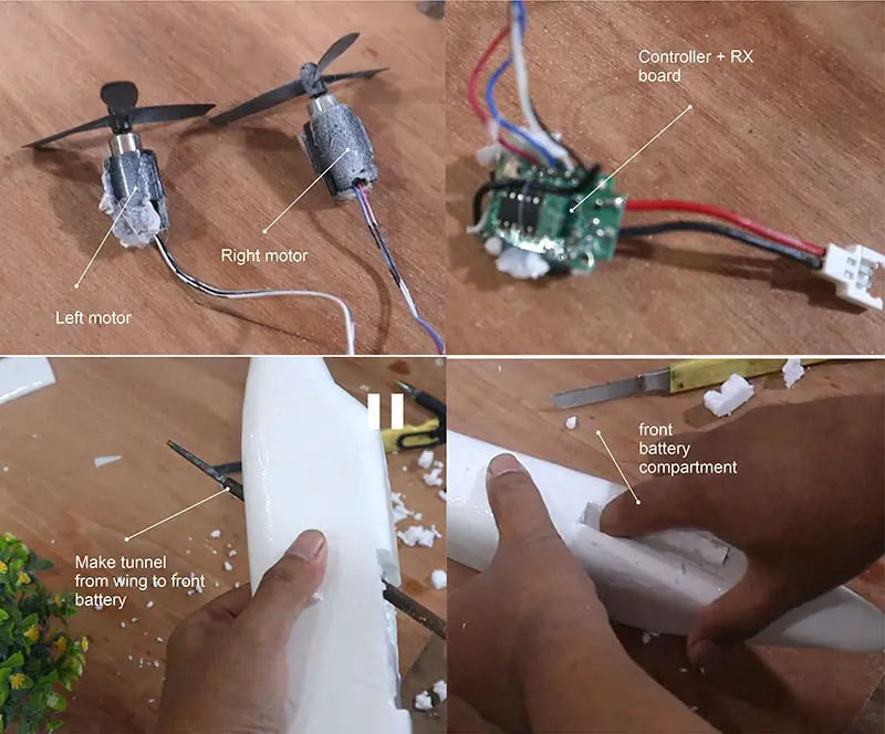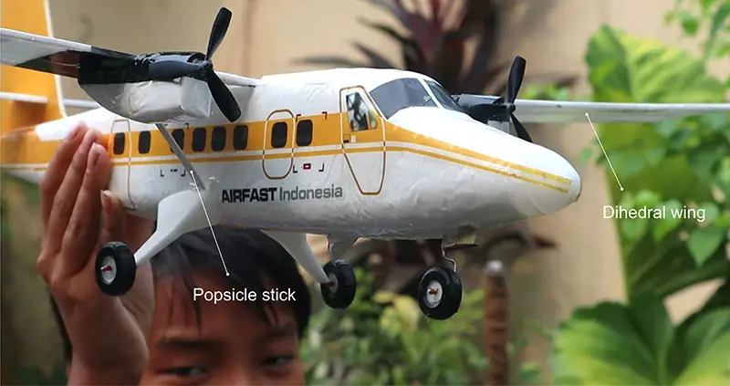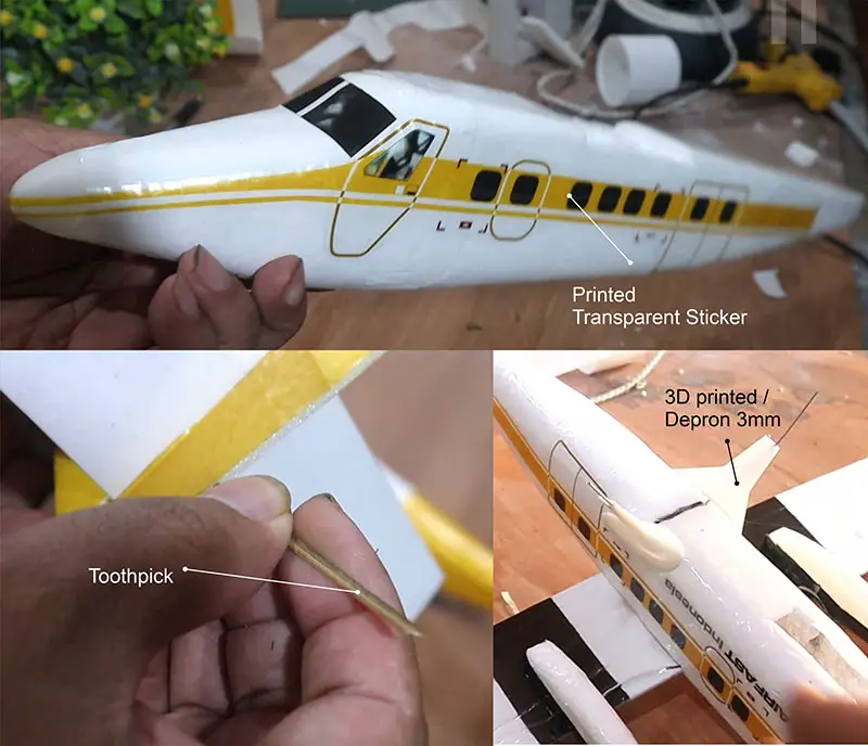 There's a technical problem on the background about making F-18 Super Hornet video that made the video will not ready yet on time for this month. So I specifically made this micro RC Twin Otter as a filler also because my friend Ben keep asking the plans (lol). This model is very easy to make using styrofoam for the fuselage and 3mm depron or foam board for the wing and stabilizers. I use low density styrofoam for light weight flying model. Styrofoam is basically an EPS foam or Expanded Polystyrene, maybe the styro name comes from styrene. EPS foam also known as Thermo cool/ col foam. The wingspan on the model is 65 cm or about 25.5 inch, with the flying weight using 1 cell 300mAh lipo about 70 gram. I also incorporated 3D printed parts on this model for making, nose cone, landing gear strut fairing and wheels. For you that don't have a 3D printer you can use the plans to make DIY parts with foam. I use electronics from Air-815 a cheap toy plane, the price maybe about $7. It has 2 channels, flying control only using differential thrust, so there's no elevator, to move up and down you have to control the throttle. It's quite stable because there's a built in gyro.