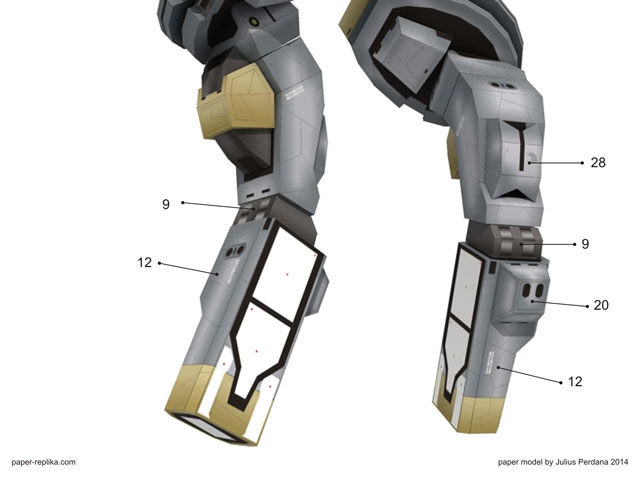 The release date is a bit delayed from it should be. My son was hospitalized for 4 days last week because of dengue fever (mosquito caused-fever), I had to frequently commute from my home to hospital. Now he's already healed and play again. This part 2 consist of arm parts. I didn't add any articulation on this model for this time, I made it as a statue with fixed parts. The parts number are the same both left and right, so you better watch the label on top of the pattern's page and the assembly instructions are for the left arm. The next part or the final part will be its hip and legs.