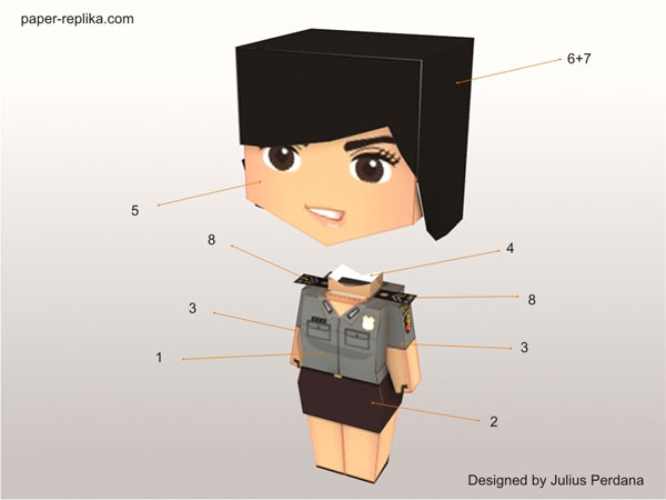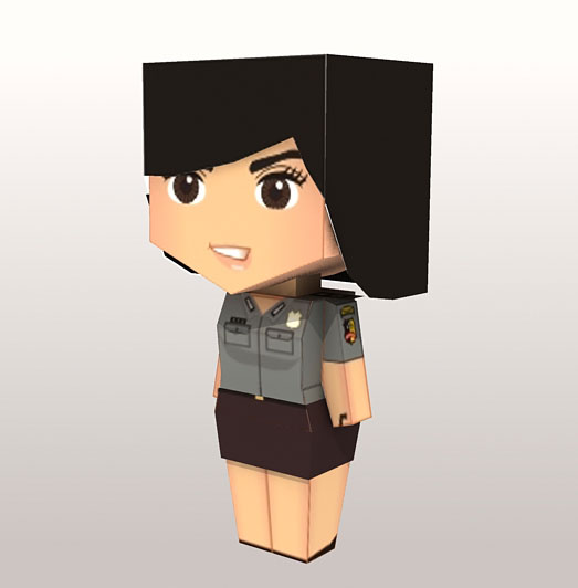 I love girls in uniform. I got this idea when I saw a picture posted by my friend in a forum, it was a photo of a police woman posed with her fellow officers, they look pretty and cute, so I made this papercraft / papertoy. Indonesian Police Woman or Polisi Wanita (Polwan) was first established on September 1st, 1948. Until 1998 there were 5 Police Women promoted into commanding position as police chiefs, one of them is a Police woman with 1 star high ranking officer.